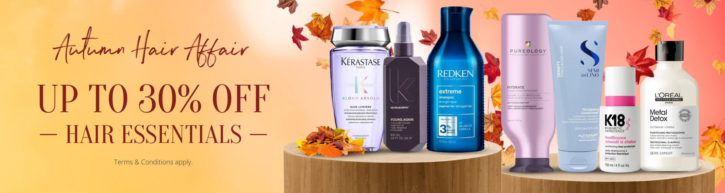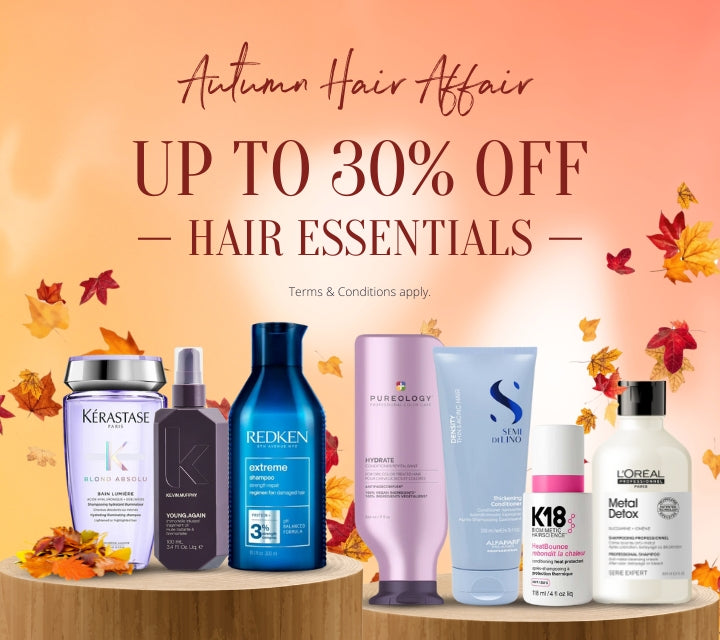 Learn MoreThis Autumn, indulge in the art of beautiful hair with our exclusive Autumn Hair Affair Event. Enjoy up to 30% off a curated selection of haircare essentials from the most trusted professional brands. From deeply restorative treatments to shine-enhancing favourites, each product is designed to nourish, protect and revitalise your hair as the seasons change. Elevate your routine and embrace the elegance of healthy, radiant hair this autumn.