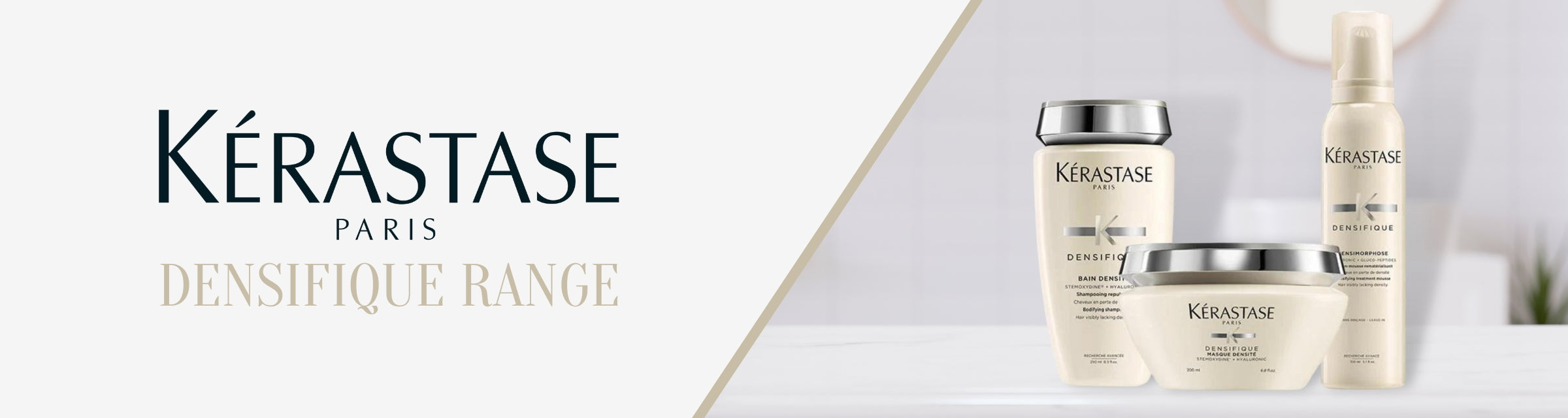 Kérastase Densifique is a range of hair care products that feature densifying technologies such as hyularonic acid and Intra-Cyclane to plump, hydrate and strengthen the hair. Leaves flat and limp hair looking thicker and full of body.