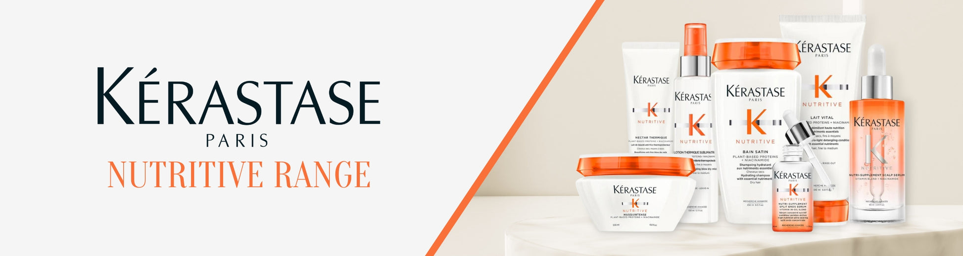 Shop our best selling range for dry hair- Nutritive. Kérastase Nutritive targets different levels of dryness. A nourishing and revitalising collection of haircare products formulated with plant proteins, amino acids, nutrients and Vitamin B rich Niacinamide. Strengthen your hair, prevent breakage and split ends and hydrate from root to tip.