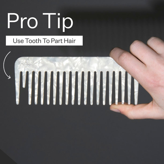 A multifunctional comb, designed with wide-spaced teeth for gentle detangling and a shorter second tooth to make parting your hair easy.