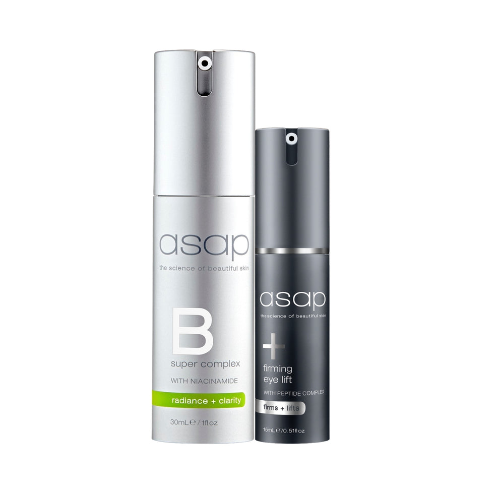 This youthful boosting duo pairs the Super B Complex and Firming Eye Lift to hydrate, brighten and rejuvenate the skin for a more radiant, youthful look. Ideal for dull, dehydrated, or aging skin, this duo helps boost collagen, smooth fine lines and improve overall firmness and glow.