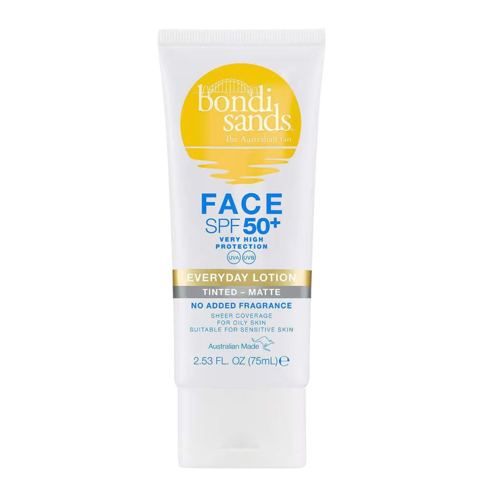 Enjoy sun protection and hydration with the Bondi Sands Fragrance Free SPF 50+ Tinted Face Lotion. This sheer, tinted formula provides broad-spectrum UVA and UVB protection while nourishing dry skin, leaving a natural, even finish. Wear it alone for a subtle glow or under makeup for added coverage.