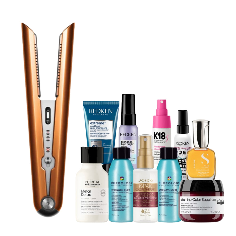 Dyson Corrale hair straightener in Bright Copper & Bright Nickel.