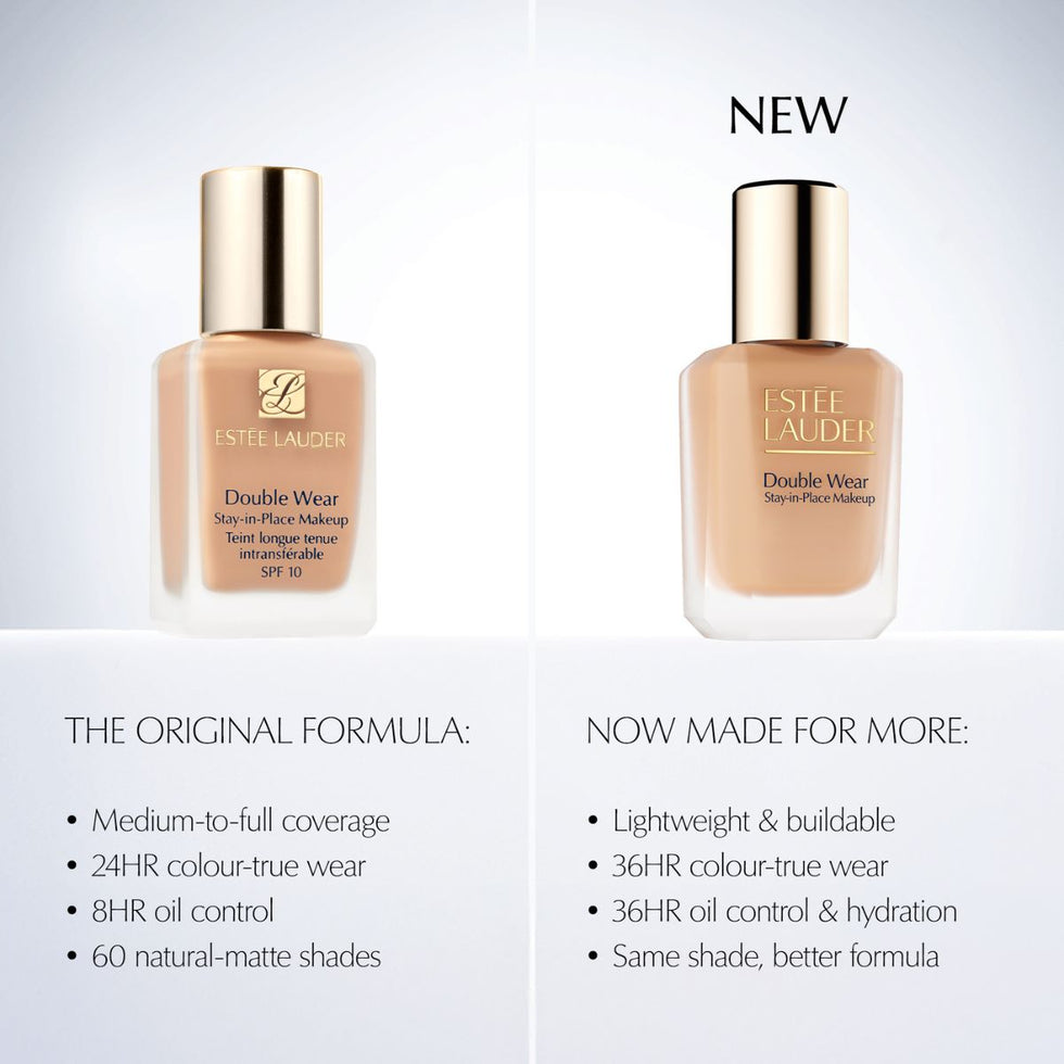 If you’re already a Double Wear fan, count on the same true-to-skin match in an even better formula. However, as with any new formula, we recommend getting re-shade matched as there may be an even better match for you now. Some customers prefer to use the product straight from the bottle. For those who prefer extra control, we offer a reusable pump.