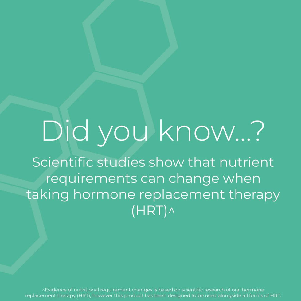 *Evidence of nutritional requirement changes is based on scientific research of oral hormone replacement therapy (HRT), however this product has been designed to be used alongside all forms of HRT.