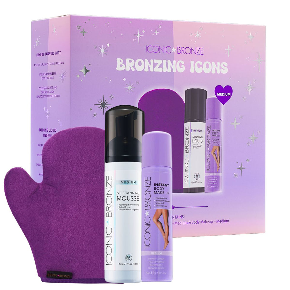 Get party-season ready with the Iconic Bronze Christmas 3pc Set – Bronzing Icons Medium. Featuring all your tanning must-haves for a flawless, golden glow, this festive trio delivers a radiant, streak-free finish every time. The perfect gift for tan lovers or a treat to keep your glow going all winter long.
