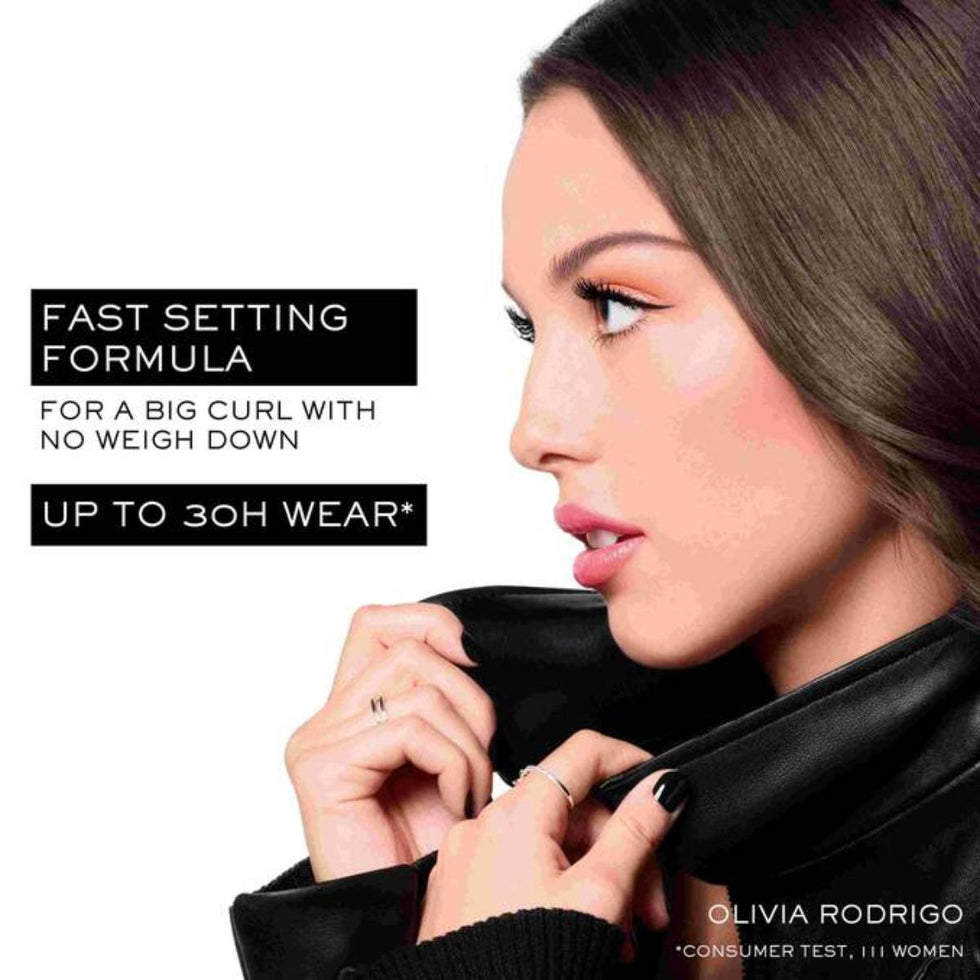 Its lightweight texture keeps lashes lifted and defined with no weigh down, for lash curl that lasts all day. The 40° twisted brush, designed with dual micro-reservoirs, coats lashes from root to tip for a fanned-out, eye-opening effect. Experience up to 30HR of long wear, with a smudge, flake and clump-free result.