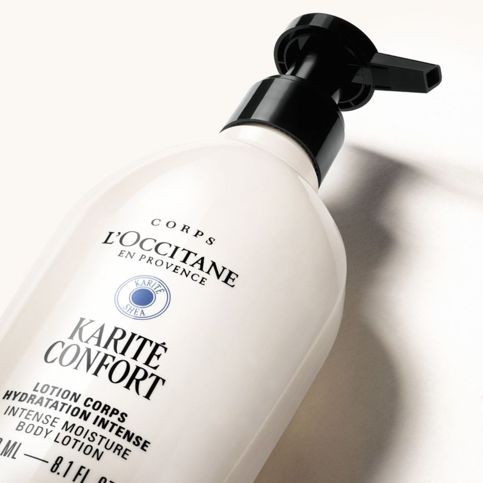 This intense moisture body lotion envelops the skin in a veil of hydration, delivering daily comfort and long lasting protection. Enriched with 15 percent shea butter and sweet almond oil, it helps soothe dryness, restore moisture and reinforce the skin barrier against everyday external aggressors. The silky, fast absorbing texture glides on easily without leaving a greasy finish, leaving skin soft, supple and comforted throughout the day. Dermatologically tested and suitable for sensitive skin, the formula contains over 93 percent natural origin ingredients. Supported by over 40 years of sustainable shea sourcing, protecting ecosystems and supporting more than 6,000 women in West Africa.
