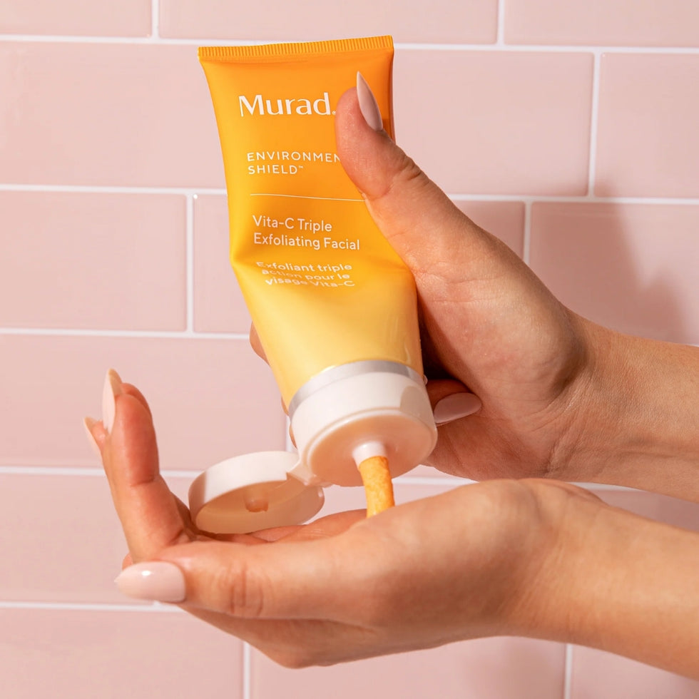 Triple action, vitamin C-infused facial gently but effectively exfoliates to instantly smooth, brighten and boost radiance. Murad’s resurfacing facial with gold-stabilized vitamin C gently but effectively exfoliates to instantly smooth, brighten and boost radiance with results comparable to a microdermabrasion facial. The color-changing formula indicates even application to make exfoliation an effective and gentle experience every time.
