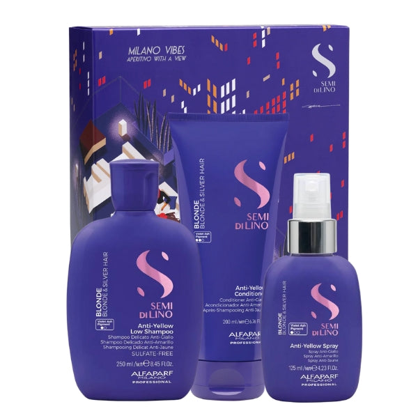 SEMI DI LINO BLONDE - blonde and silver hair. Anti-Yellow Spray neutralises unwanted yellow tones and detangles hair without weighing it down.