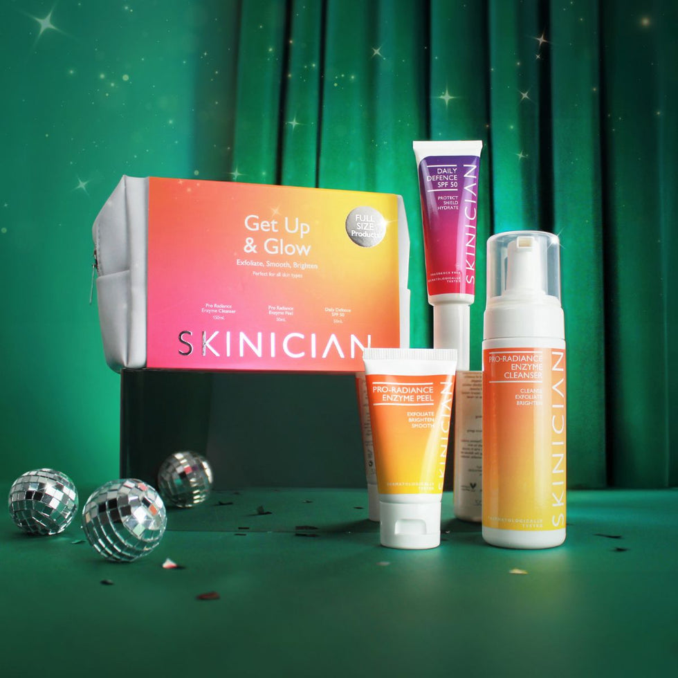 The Get Up & Glow Set is a three-piece routine created to renew and revitalise tired-looking skin. Harnessing the power of AHAs, fruit enzymes, and advanced actives, it works to refine texture, brighten tone, and restore hydration. With two targeted resurfacing treatments and a protective daily SPF moisturiser, this collection helps to diminish discolouration, soften fine lines, and reveal a healthy, luminous glow.