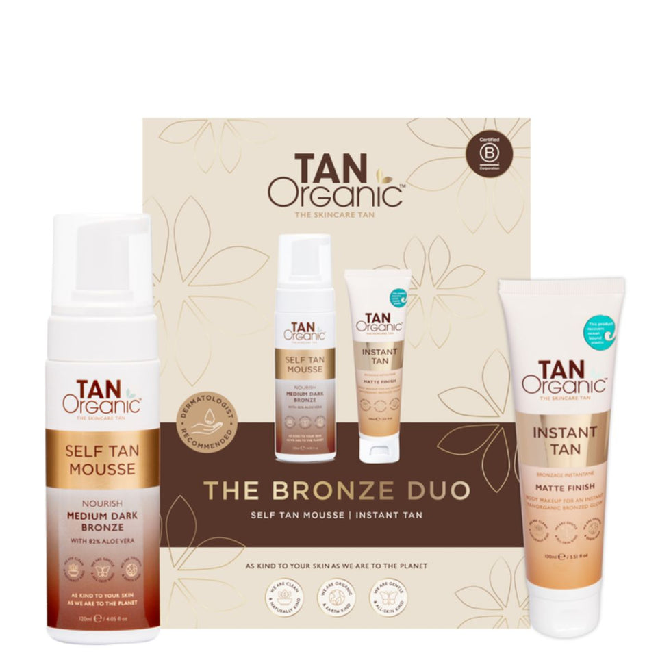 Glow naturally with the TanOrganic The Bronze Duo Gift Set the ultimate pairing for a flawless, sun-kissed complexion all year round. This luxurious set features two of TanOrganic’s best-selling, eco-certified products designed to nourish your skin while delivering a radiant, streak-free tan.