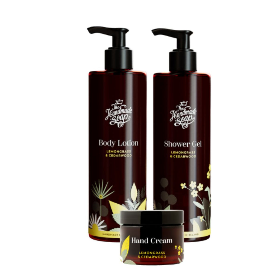 our Lemongrass and Cedarwood Hand Cream, Shower Gel and Body Lotion. The absolute