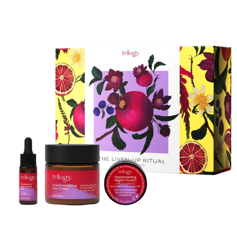 Bakuchiol Oil: Rosa canina (rosehip) seed oil*, Macadamia integrifolia (macadamia) seed oil*, Caprylic/capric triglyceride, Bakuchiol, Calophyllum inophyllum (tamanu) seed oil*, Nigella sativa (black cumin) seed oil*, Euterpe oleracea (acai) fruit oil*, Avena sativa (oat) kernel extract*, Helianthus annuus (sunflower) seed oil*, Solanum lycopersicum (tomato) seed oil, Vaccinium macrocarpon (cranberry) seed oil, Lycopene, Tocopherol (vitamin E), Rosmarinus officinalis (rosemary) leaf extract *Organic ingredient 100% of total ingredients are from natural origin. Line Smoothing Day Cream: Aqua (water), Glycerin, Salvia hispanica (chia) seed oil, Simmondsia chinensis (jojoba) seed oil, Cetearyl alcohol, Coco-caprylate, Caprylic/capric triglyceride, Butyrospermum parkii (shea) butter, Cetearyl olivate, Sorbitan olivate, Theobroma cacao (cocoa) seed butter, Gleditsia triacanthos (honey locust) seed extract, Vaccinium myrtillus (blueberry) seed oil, Fragaria ananassa (strawberry) seed oil, Punica granatum (pomegranate) seed oil, Persea gratissima (avocado) oil, Oenothera biennis (evening primrose) oil, Tocopheryl acetate (vitamin E), Sodium hyaluronate, Euterpe oleracea (acai) fruit oil, Tocopherol (vitamin E), Helianthus annuus (sunflower) seed oil, Rosmarinus officinalis (rosemary) leaf extract, Potassium cetyl phosphate, Xanthan gum, Citric acid, Glyceryl caprylate, Parfum (fragrance), Benzyl alcohol, Dehydroacetic acid, benzyl salicylate*, citronellol*, limonene* *Components of natural essential oils 99.2% of total ingredients are from natural origin. Replenishing Night Cream: Aqua (water), Aloe barbadensis (aloe vera) leaf juice, Coco-caprylate, Prunus amygdalus dulcis (sweet almond) oil, Cetearyl alcohol, Glycerin, Caprylic/capric triglyceride, Cetearyl olivate, Parfum (fragrance), Salvia hispanica (chia) seed oil, Sorbitan olivate, Theobroma cacao (cocoa) seed butter, Sodium stearoyl glutamate, Vaccinium myrtillus (blueberry) seed oil, Fragaria ananassa (strawberry) seed oil, Punica granatum (pomegranate) seed oil, Ubiquinone (coenzyme Q10), Glycyrrhiza glabra (licorice) root extract, Morus alba (mulberry) root extract, Cucumis sativus (cucumber) fruit extract, Chamomilla recutita (matricaria) flower extract, Oenothera biennis (evening primrose) oil, Sodium hyaluronate, Tocopheryl acetate (vitamin E), Helianthus annuus (sunflower) seed oil, Sclerocarya birrea (marula) seed oil, Olea europaea (olive) fruit oil, Persea gratissima (avocado) oil, Calendula officinalis flower extract, Tocopherol (vitamin E), Glycine soja (soybean) oil, Camellia sinensis (green tea) leaf extract, Citric acid, Sodium hydroxide, Benzyl alcohol**, Dehydroacetic acid**, limonene* *Components of natural essential oils ** Preserved with Dehydroacetic acid and Benzyl alcohol 99.2% of total ingredients are from natural origin.