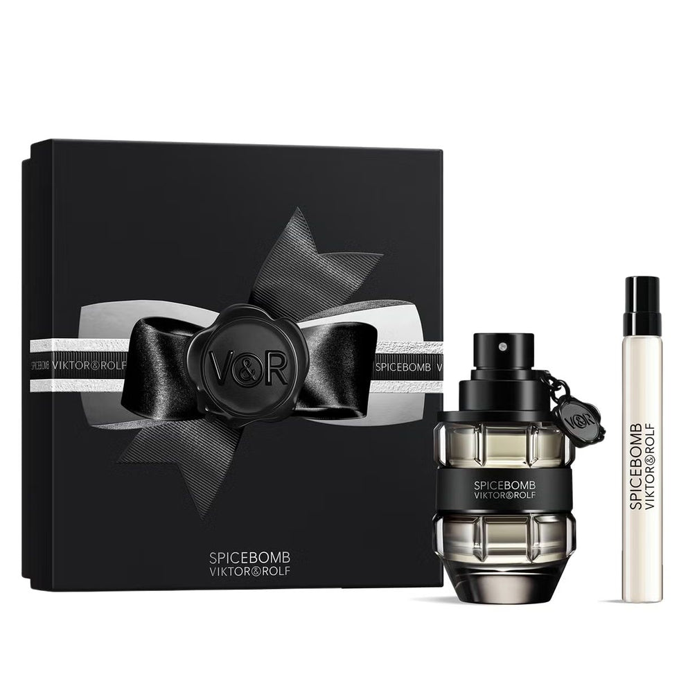 Unleash the explosive power of masculinity this holiday season with the 2025 Viktor & Rolf Spicebomb Eau de Toilette Gift Set. This captivating set comes in striking packaging adorned with larger-than-life shiny metallic ribbons and the iconic Viktor & Rolf embossed seal, hinting at the sensational fragrance experience inside. Inside, discover a powerful duo: a 50ml bottle of Spicebomb Eau de Toilette, ready to ignite your senses, and a 10ml travel spray to keep the explosive scent at your command wherever you go. Spicebomb is an instant olfactory detonation, a fragrance that makes no concessions. This explosive concentrate of masculine sensuality fuses incandescent spices like cinnamon and saffron with the rugged elegance of leather and tobacco, further enhanced by the distinguished strength of vetiver. A burst of fresh, zesty bergamot and grapefruit, sharpened by the icy bite of elemi and pink pepper, adds another layer to this complex and captivating fragrance. Give the gift of uncontainable masculine sensuality this holiday season with the Viktor & Rolf Spicebomb Gift Set.